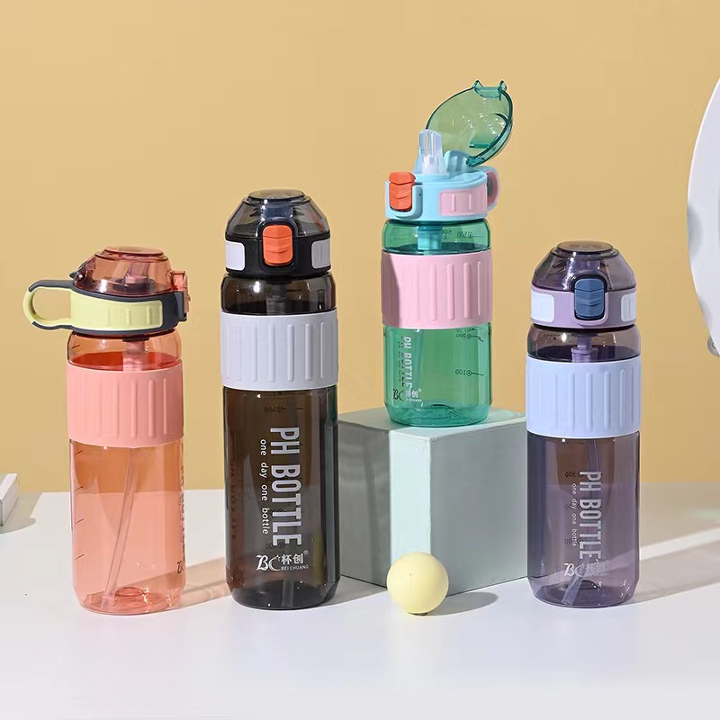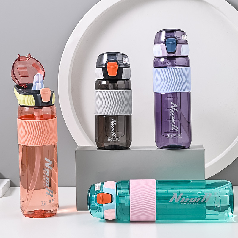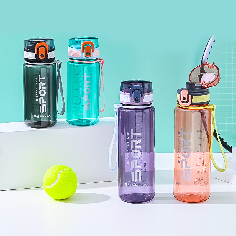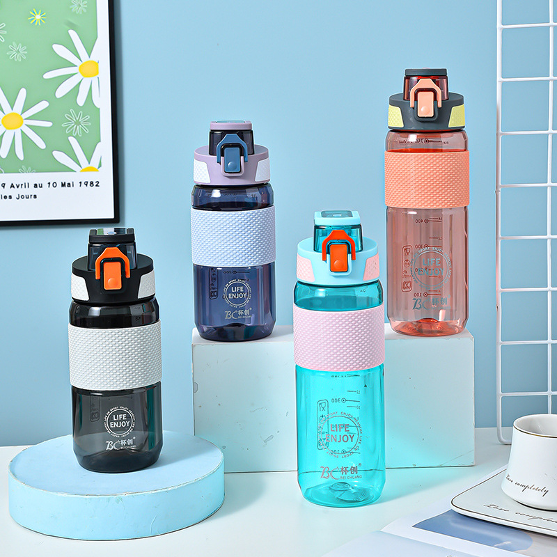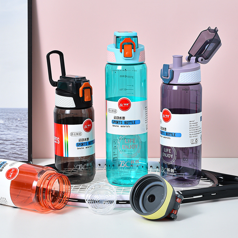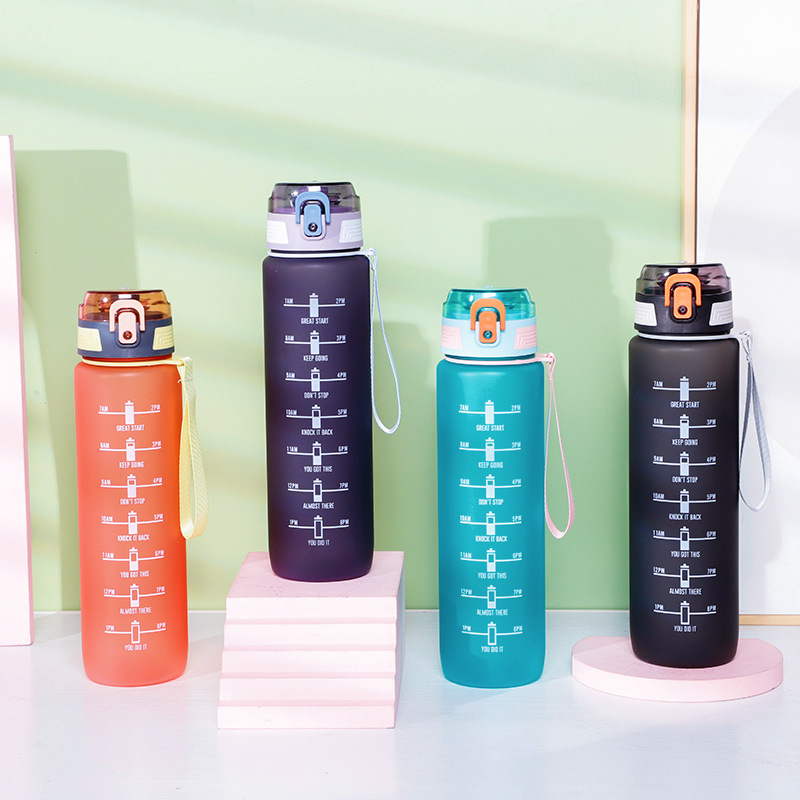 現物卸売りカップ創弾みプラスチックカップ1lスケール付きアウトドアスポーツ水筒耐高温防止学生カップ