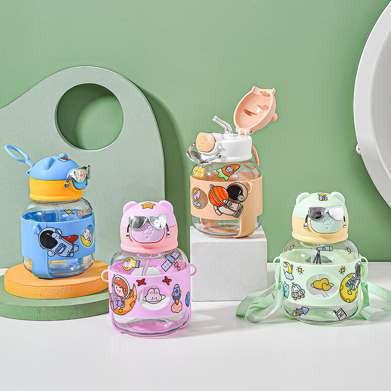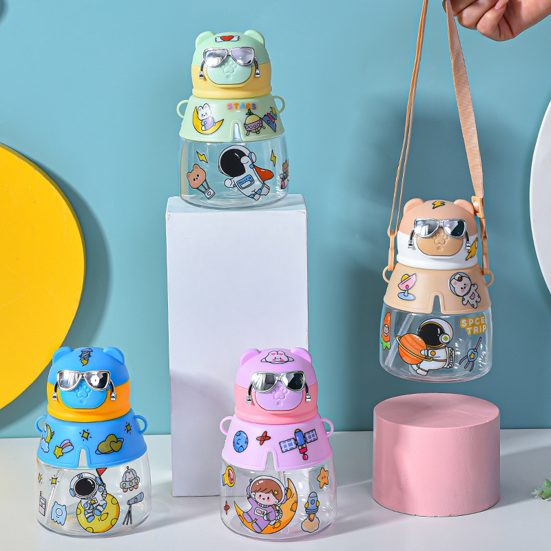 カップ創2023新型児童水筒幼稚園学生漫画ベアーストローコップ帯ストラップ工場直販