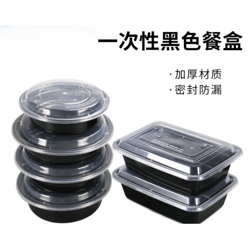 使い捨てランチボックスアメリカンラウンド黒厚みのある蓋付きランチボックス長方形商業テイクアウトボックス