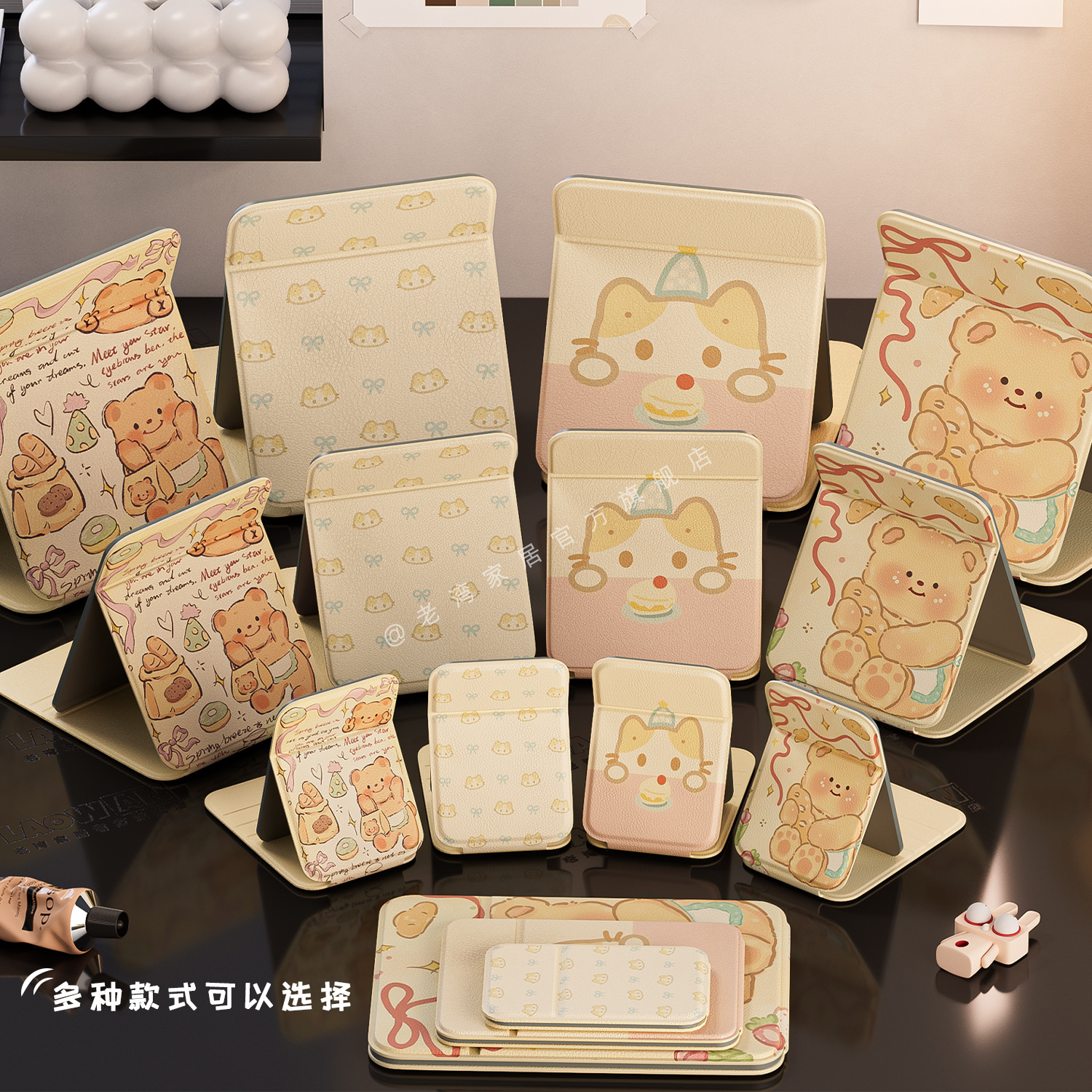 漫画折りたたみ小型ミラー学生寮化粧鏡女性ポータブルオフィスデスクトップかわいい化粧鏡