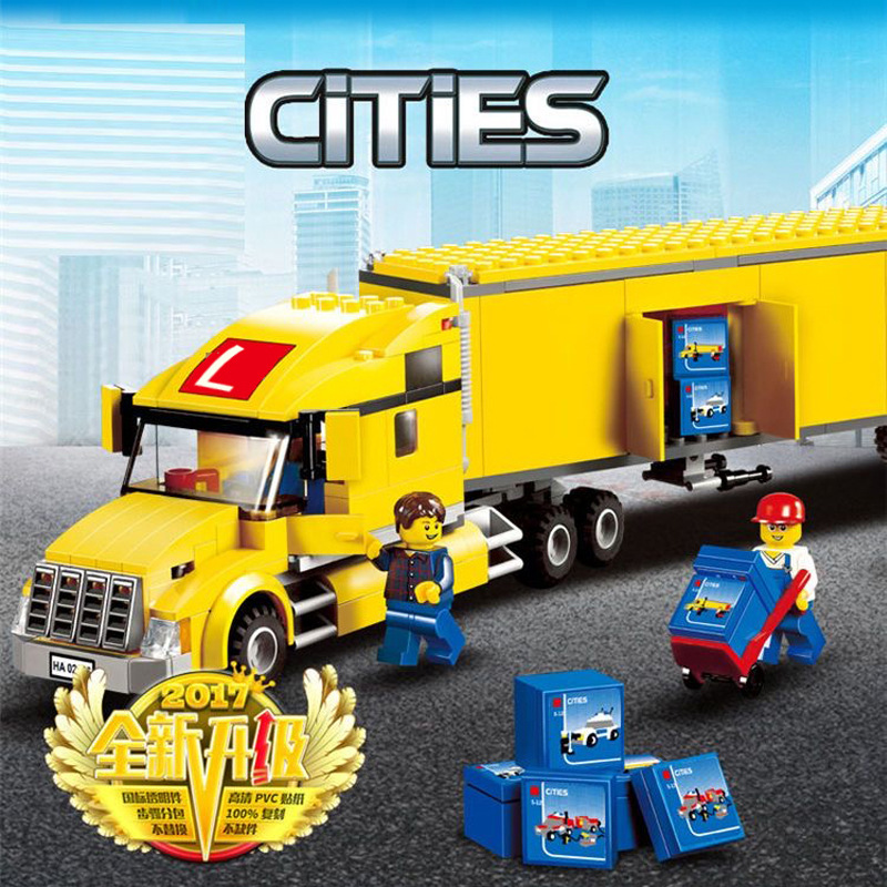 シティシリーズシティイエロービッグトラック 3221 コンテナ輸送トラックビルディングブロックおもちゃ男の子組み立てギフト