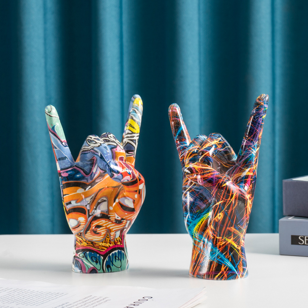 越境新品ロックジェスチャー樹脂置物ホームリビングルーム装飾創意人物ジェスチャーキャビネット玄関装飾