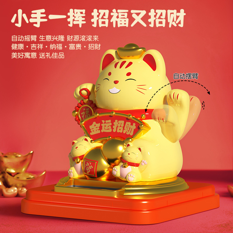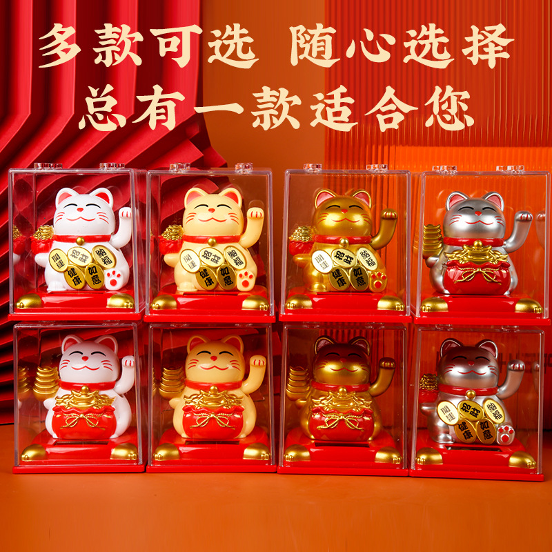 震え音同金2.4インチ太陽エネルギー招財猫揺手車載装飾祝日プレゼント開運招財小置物