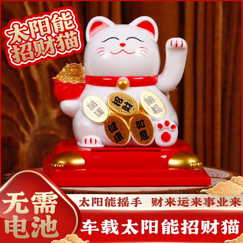 太陽エネルギー車載自動揺り手招き猫創意自動車装飾発財猫小置物店舗オープンプレゼント