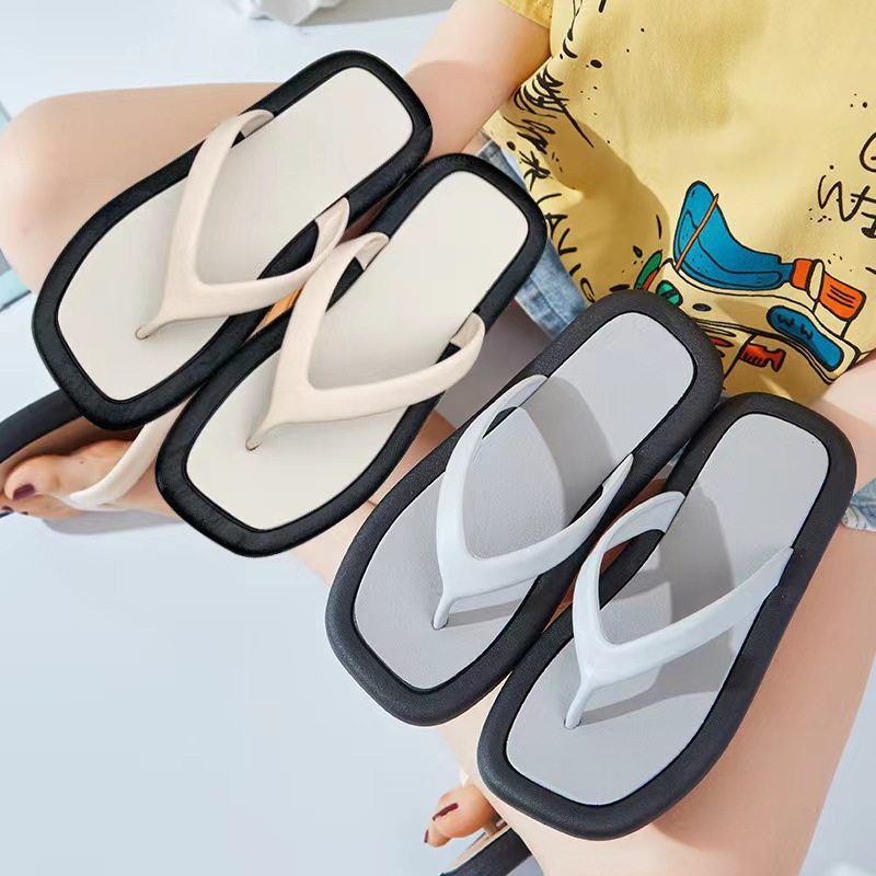 2023韓国版ネット紅の厚い底のスリッパの女性の夏の外は新型の海辺の砂浜の1字を着て室内と外の卸売りを引き延ばします。