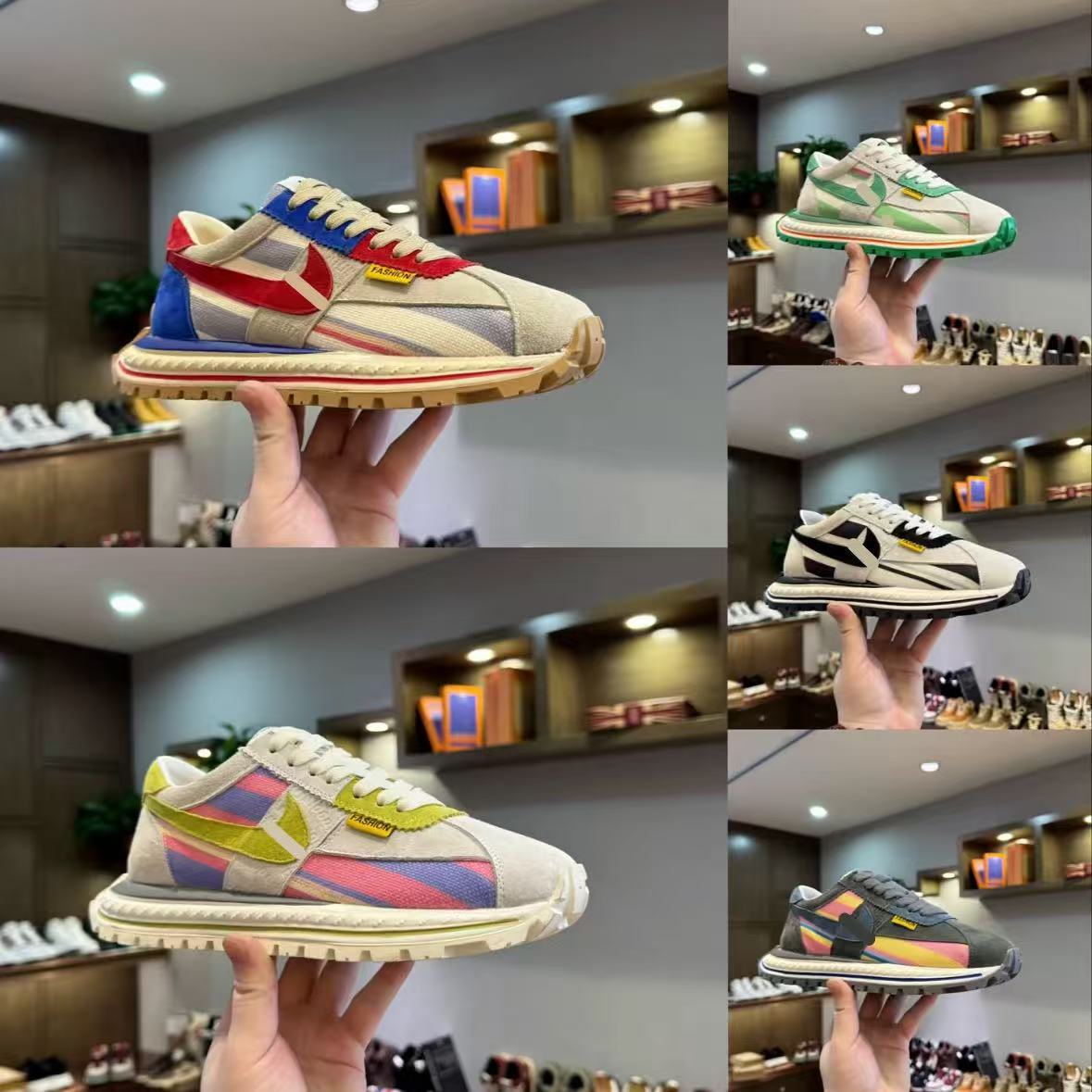 夏の新型の低いネット靴のファッション的なレトロなひものカジュアルシューズの男性の色合わせ2025春の新型