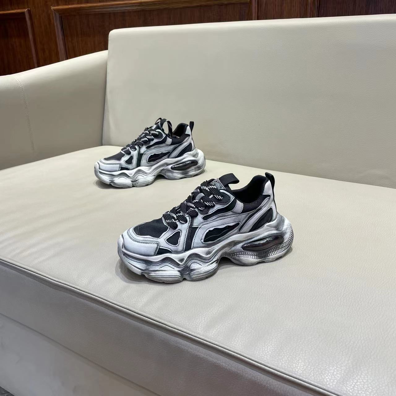 潮牌のお父さんの靴の男性の2025新型の厚い底の高い靴のヨーロッパ駅の青年の運動のカジュアルな靴の小さい衆の靴