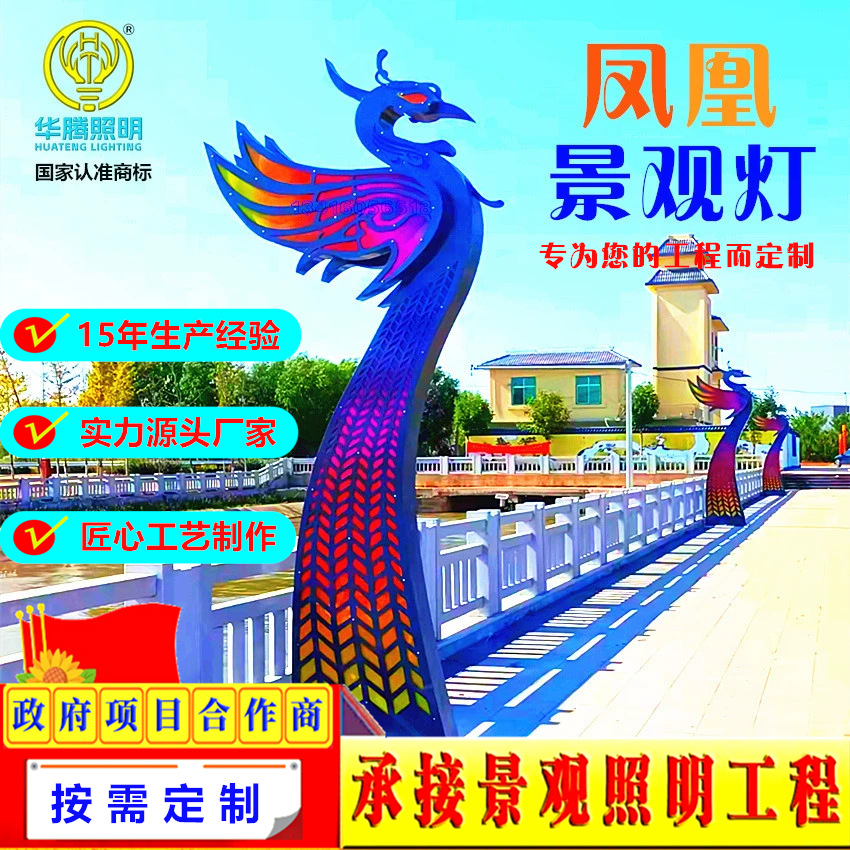 Huateng メーカーカスタマイズされたフェニックス風景ライト LED 屋外モデリング風景ライト風景公園道路孔雀ライト
