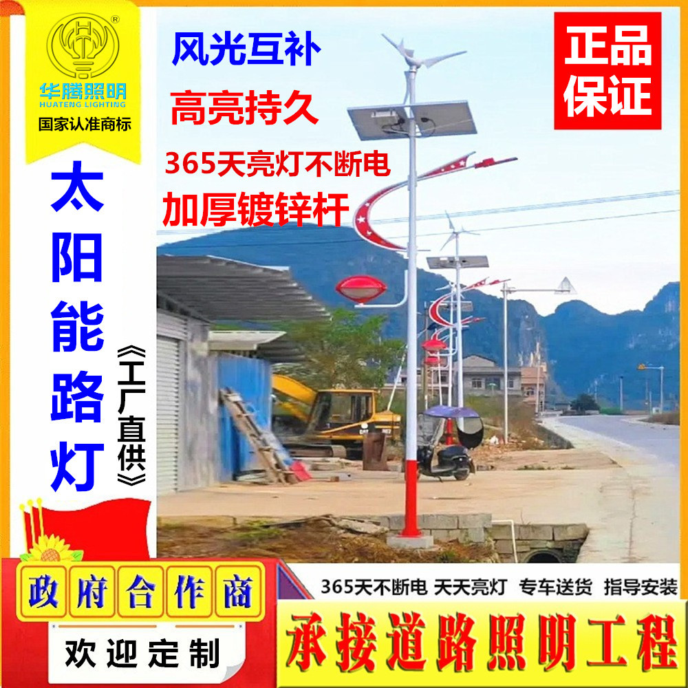 新農村風景相補太陽光街灯6メートル8メートル屋外LEDファン風力発電路灯ポール