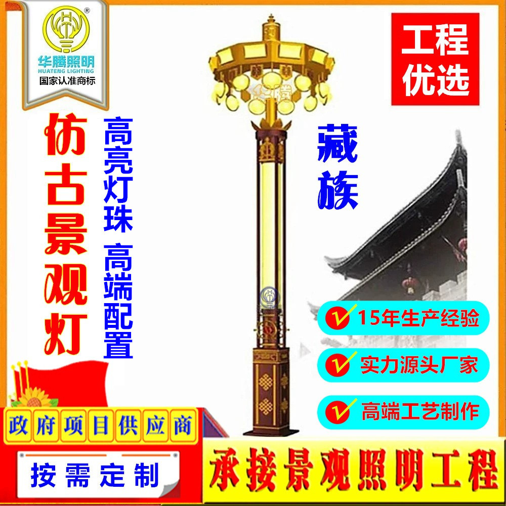 華騰直供屋外景観灯観光地区広場造形LED景観灯付き太陽エネルギー柱灯卸売り