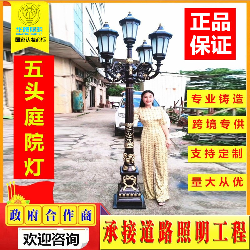 ヨーロッパ式屋外防水団地街灯花園別荘家庭用景観灯庭灯5頭高竿クラウン街灯