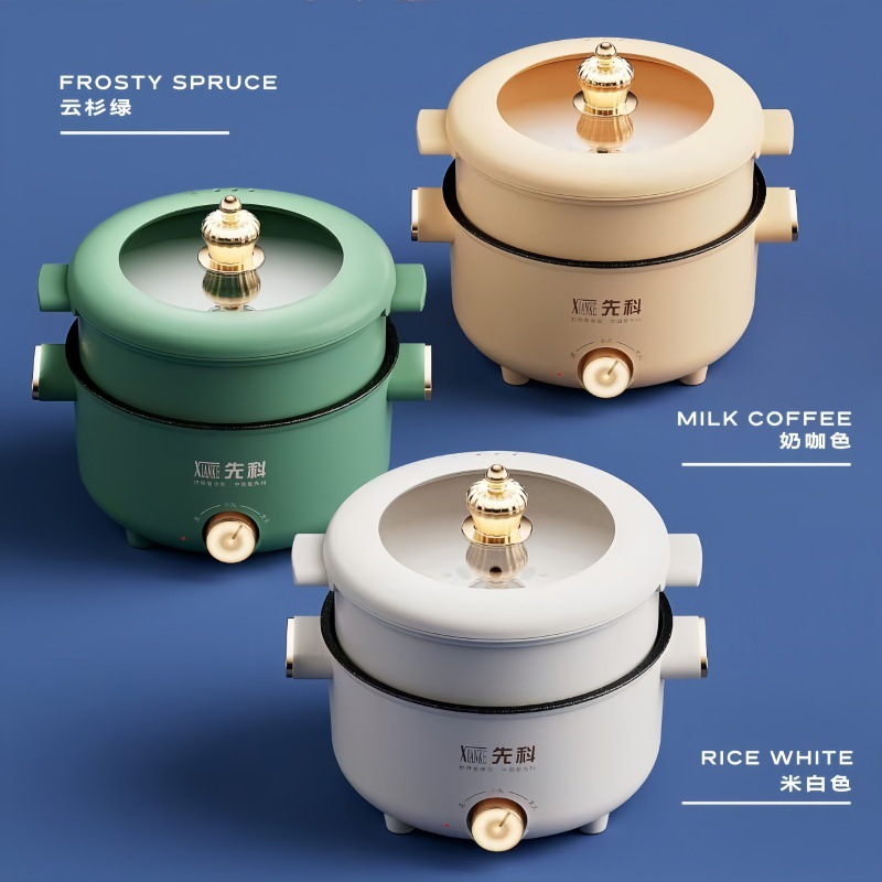 新商品先科二層電気煮鍋多機能不粘着電気鍋家庭用蒸煮一体型鍋小型料理鍋