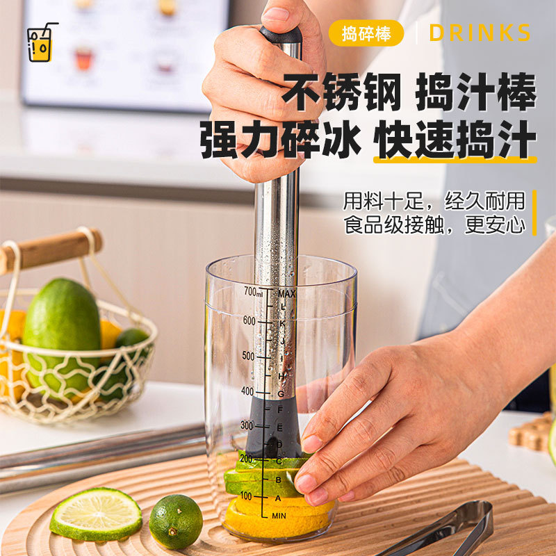 レモンハンマー圧汁棒セット圧汁棒ミルクティー店用品ステンレススタンプハンマー砕氷ハンマー果物スタンプ棒