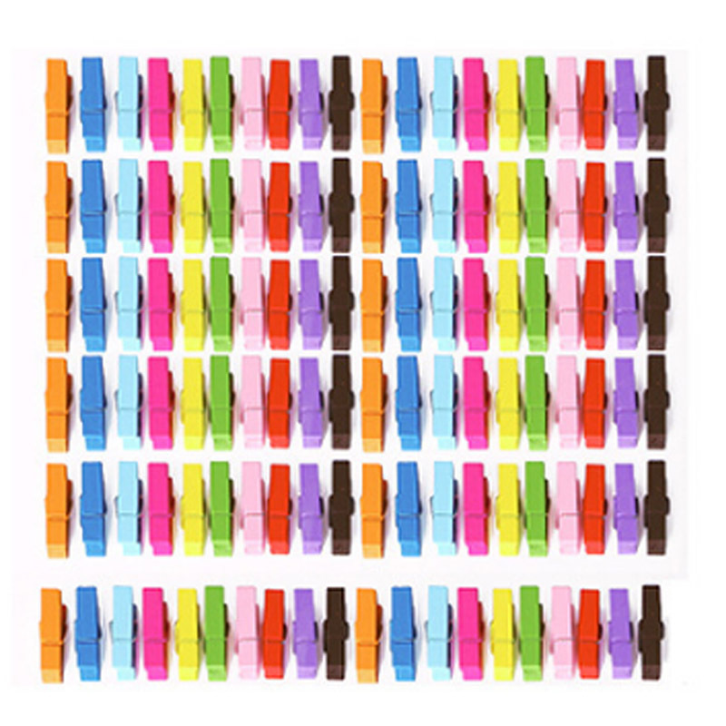 100个カラー写真クリップ写真クリップ3.5mm木制小さなクリップ便クリップ写真壁装饰