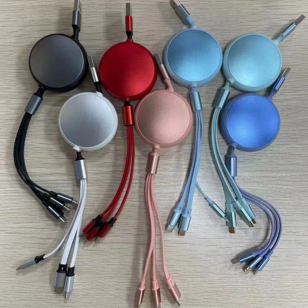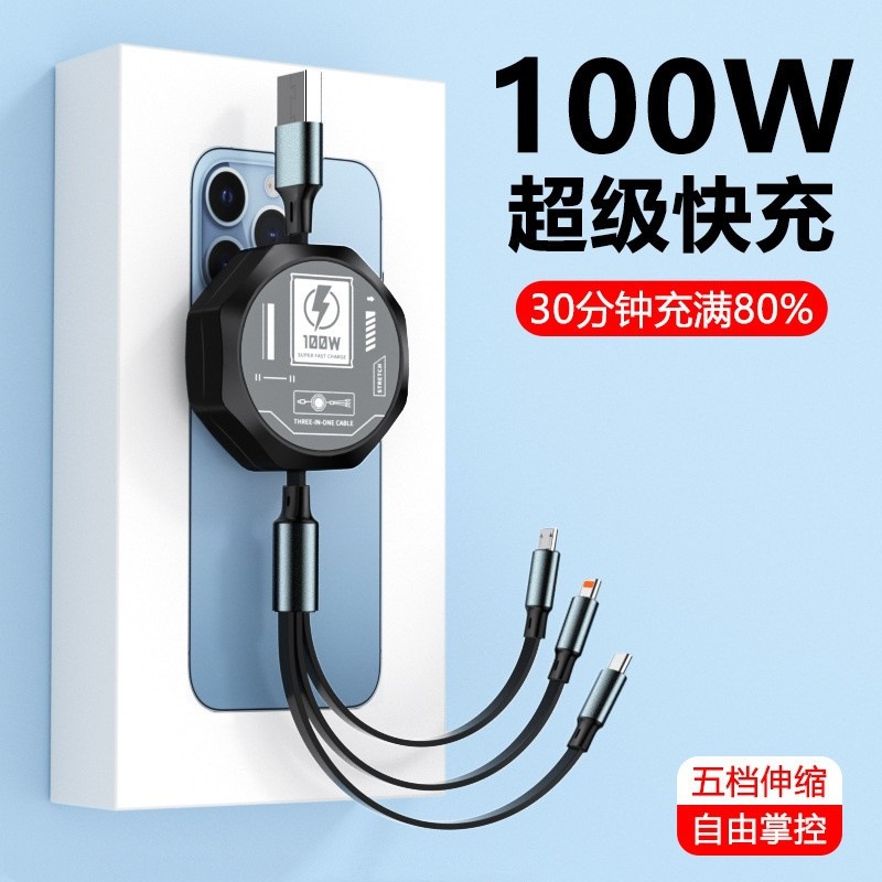 伸縮一引き三データ線100W急速充電type-c携帯電話三合一充電線卸売り印刷ロゴ