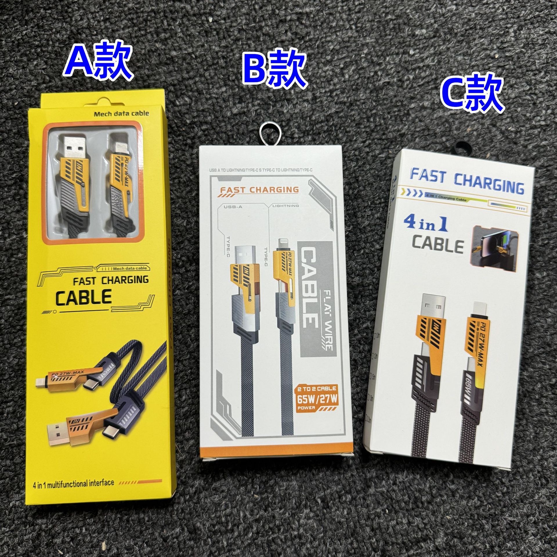 四合一充電線包装カラーケース皮子快充二モップ二機甲黄色データ線ブリスター箱セット