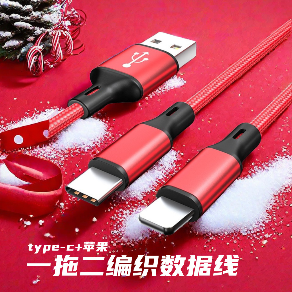 起爆二引き二データ線はリンゴの米四合一編組の急速充電type-C安卓充電線を適用する