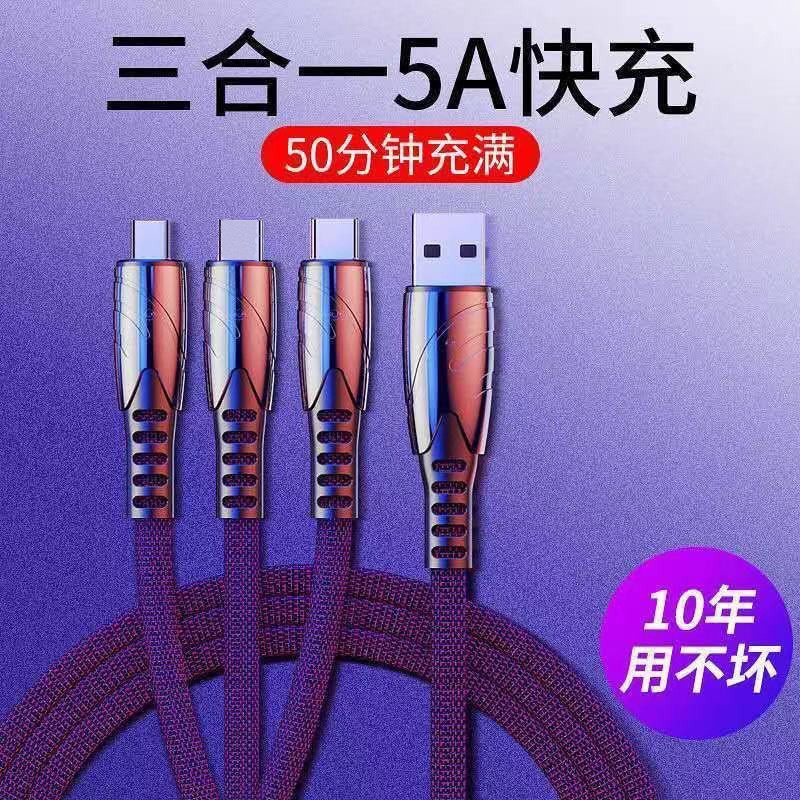 一モップ三亜鉛合金急速充電5aデータ線氷磁器三合一充電線は華為粟リンゴ安卓に適用される