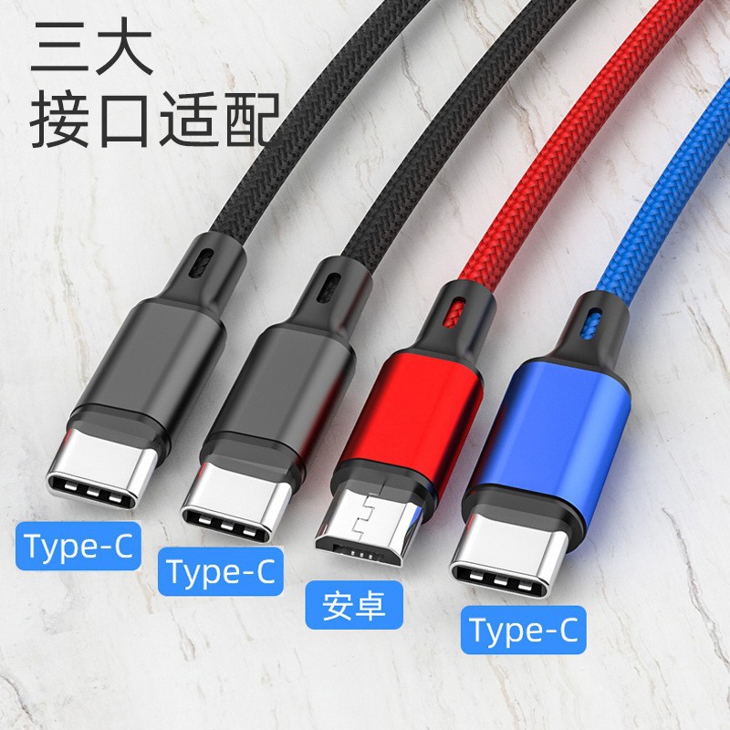 1つのモップ2つの編組の急速充電データ線2つの携帯電話の充電線はアップルのTYPE-Cのandroidプレゼントを適用します。
