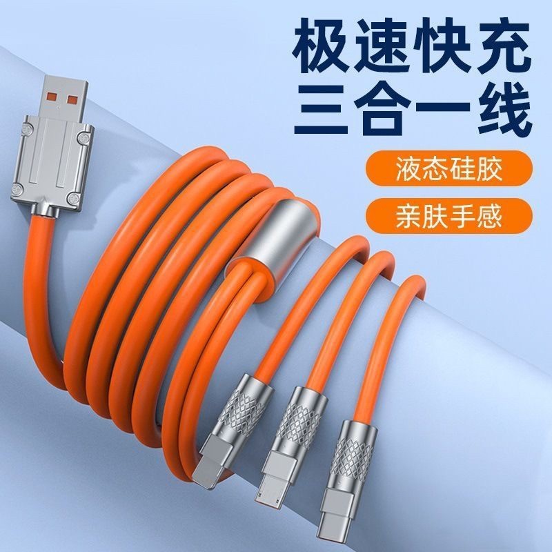 120w超速充機客は三ケーブルをドラッグして、アンドロイド華為アップル携帯電話三合一充電線を適用する