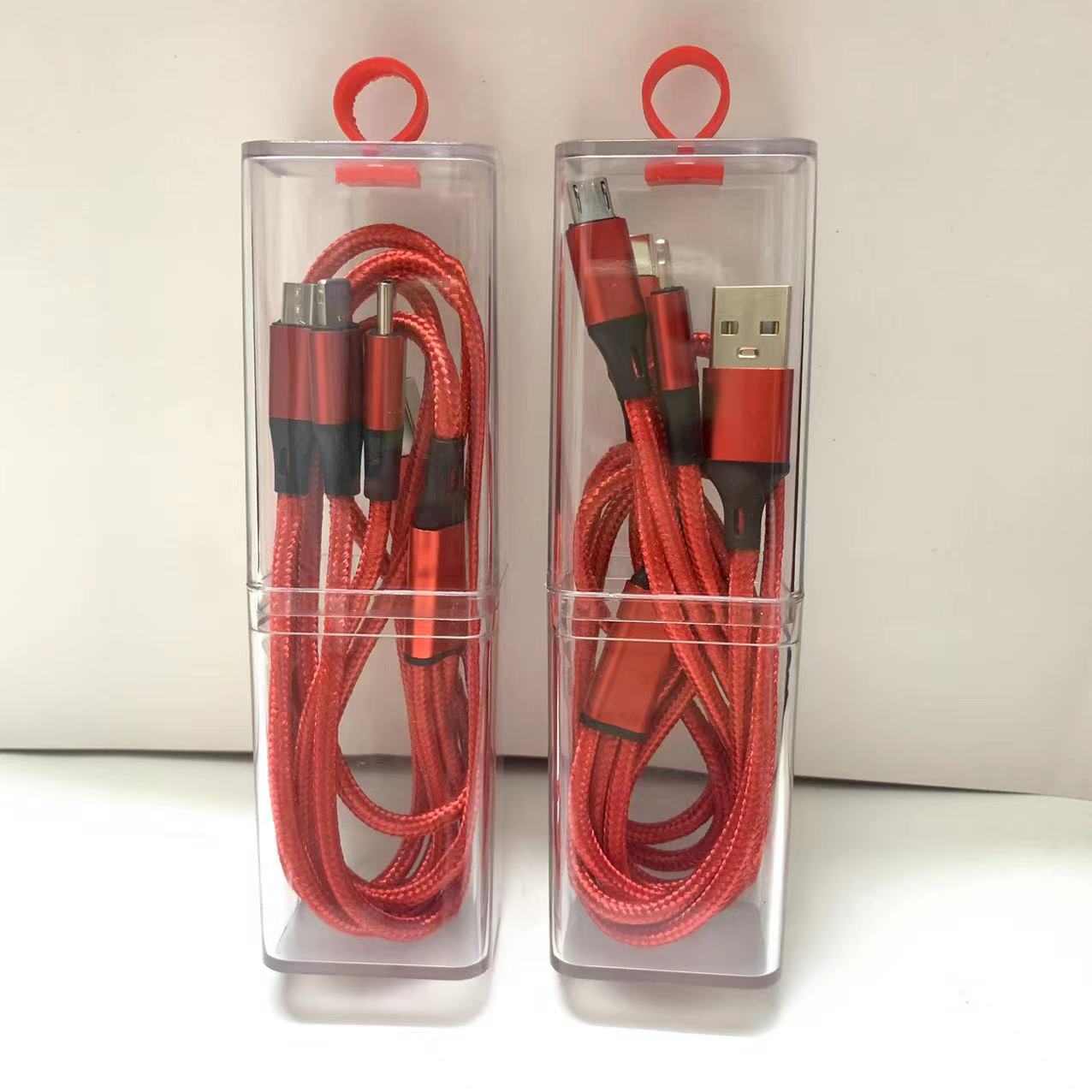 3IN1一拖三データケーブル包装イヤホン完全透明ディスプレイボックスプラスチックチューブUSB充電ケーブルクリスタルチューブ