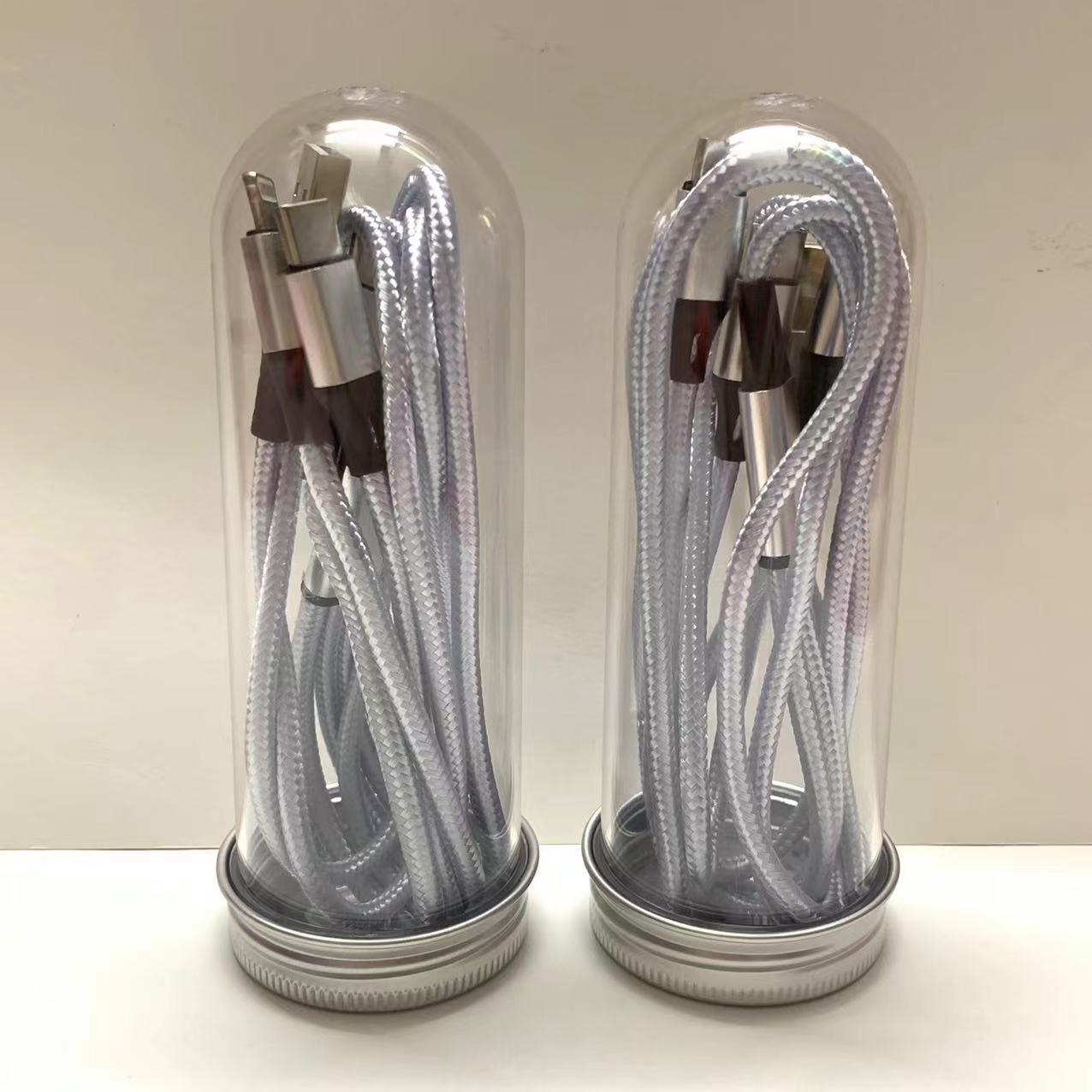 1.2メートルのモップ三編みのデータ線のカプセルの贈り物の包装の缶の充電線の透明な管の卸売りのシルクの印のlogo