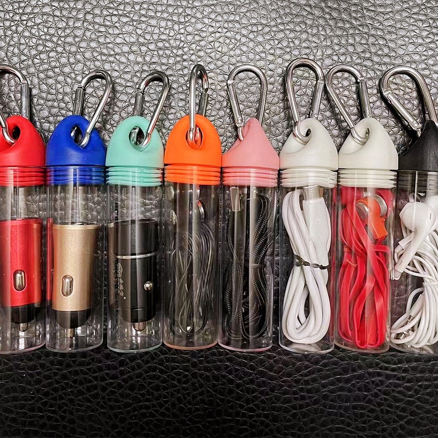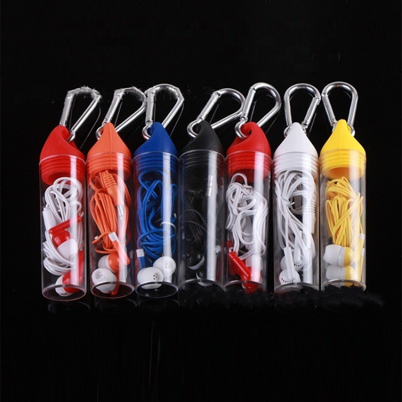 短い線は3つの透明な水晶の箱を引きずってアルミニウム合金の登山ボタンのイヤホンのパイプの車を持ってミニ包装のシリコンの蓋を詰めます。