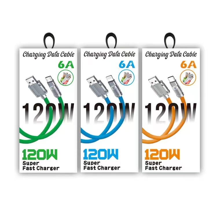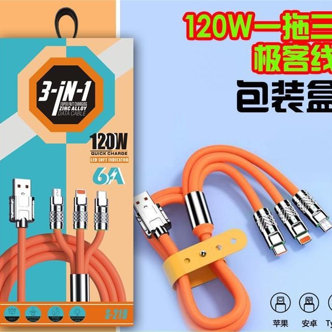 1.2メートルから2メートルまでの120W三つ組の急速充電データ線充電宝直頭一引き三機客線カラーボックス包装