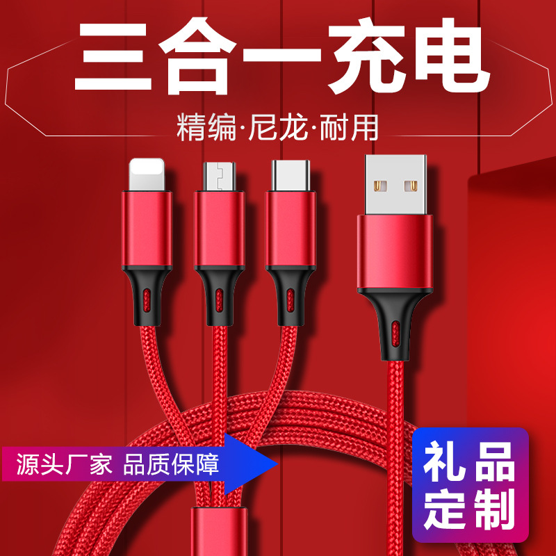 三合一ナイロン編組充電ケーブルusb1.2メートルv 8安卓平果type-c一モップ三ケーブルプレゼント
