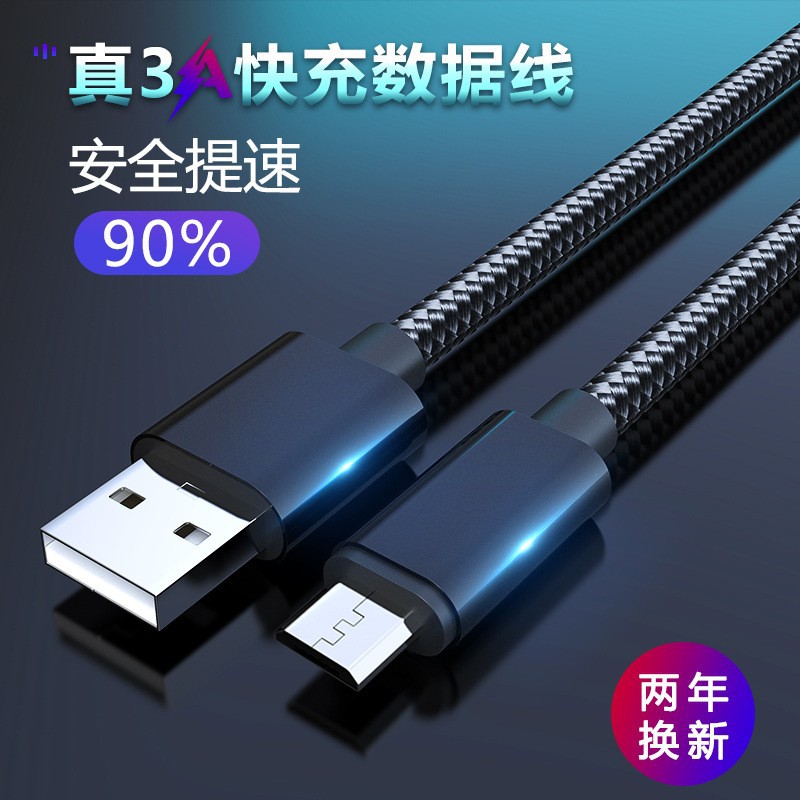 シングルヘッド1m3a充電ケーブル急速充電ナイロン編組データケーブル単線良質銅芯安卓type-cインターフェイス