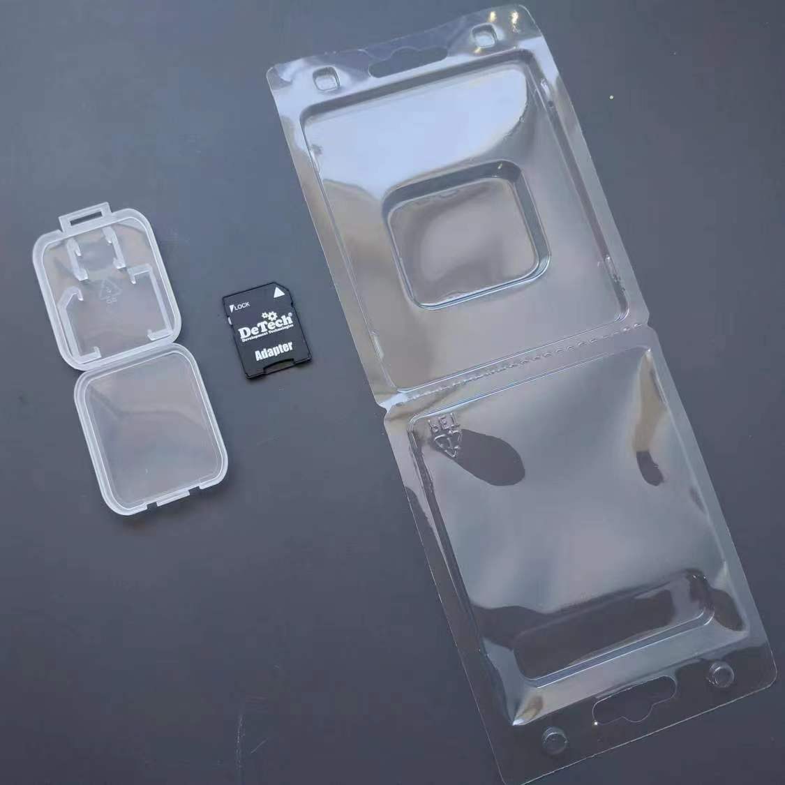 メーカー生産pvc透明二つ折りブリスターボックスtfメモリカードsdカードカバーダブルカード白ケースpet朔材泡ケース
