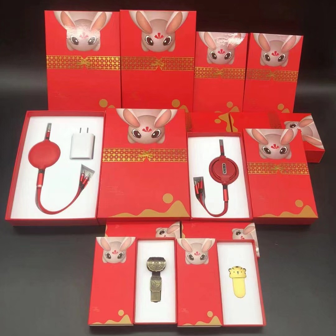 美しいuv赤色精装箱兎年移動電源充電宝データケーブルu盤箱手提げ袋天地蓋箱
