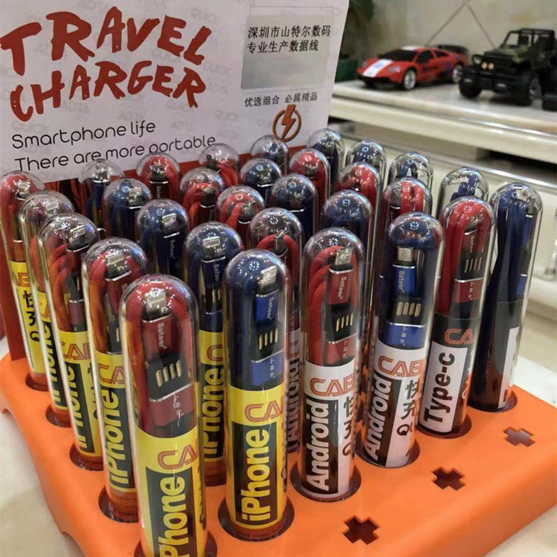 Android typeアップル充充データ線瓶透明高精細pet試験管アルミカバーusb線イヤホン線包装