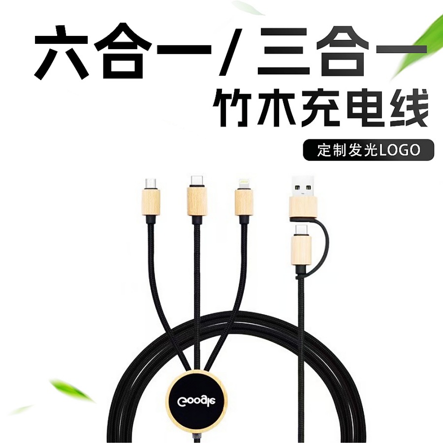 木と竹の編み込みケーブル 2 対 3 データケーブル 竹と木のスリーインワン高速充電ケーブル クロスボーダーギフトカスタマイズされたロゴ