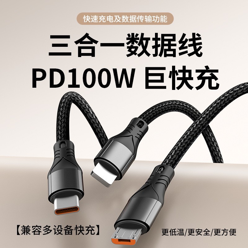 機甲編み一モップ三6a超速充データ線刀王三合一車載多機能充電線通用