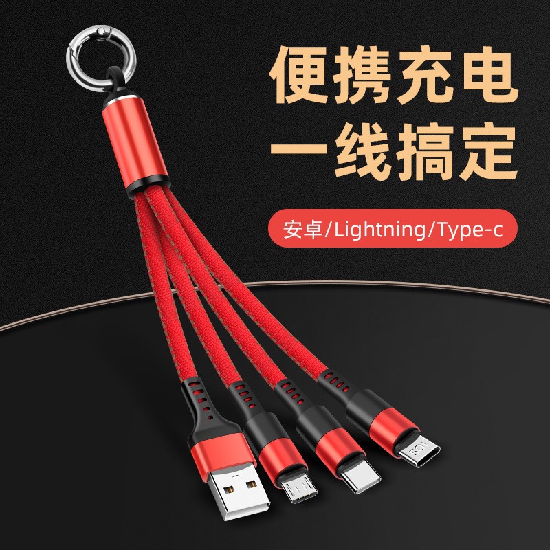 USB 1 対 3 充電ポータブル紛失防止キーホルダーショートデータケーブル Android タイプ C Huawei IOS Apple に適しています