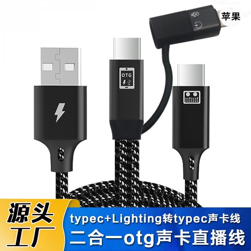 二合一のotgサウンドカードの生放送の配線はアップルアンドロイドのtypec携帯電話の同期充電線の現物を適用します。