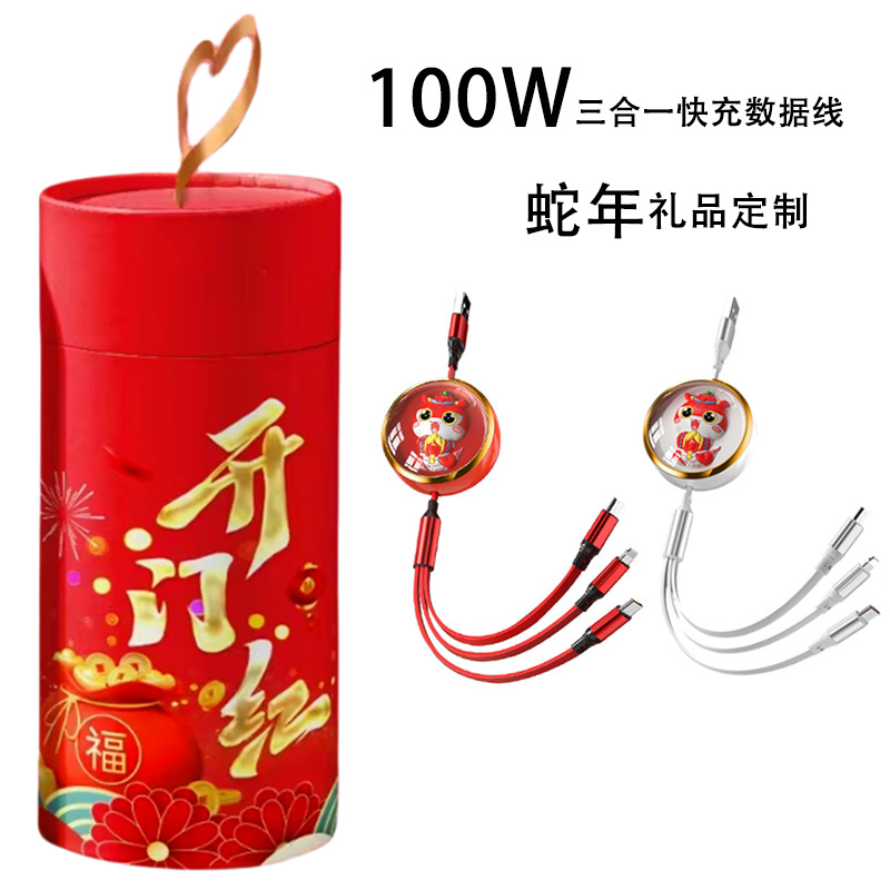 蛇年一拉三データ線福蛇生財国潮三合一充電線新年祭りプレゼントロゴ