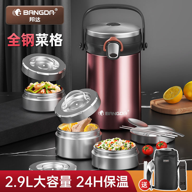 1688Bonda 真空断熱弁当箱 サラリーマン弁当箱 学生弁当箱 多層長持ち 4層大容量断熱バケツ