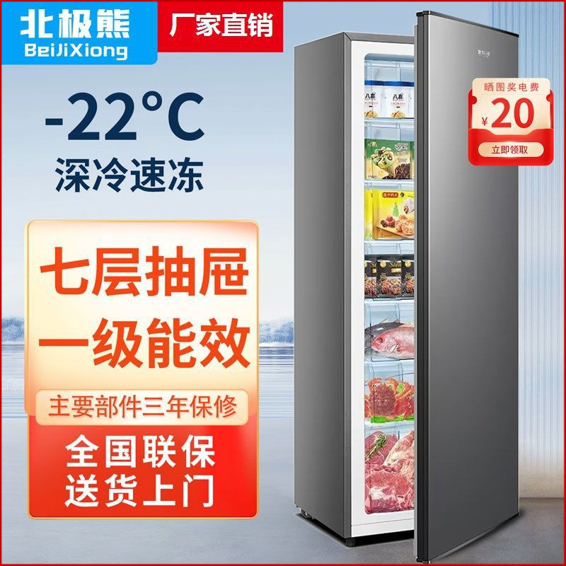 ホッキョクグマ縦型冷凍庫引き出し式家庭用全冷凍庫側開き立体大冷凍庫小型冷蔵庫母乳