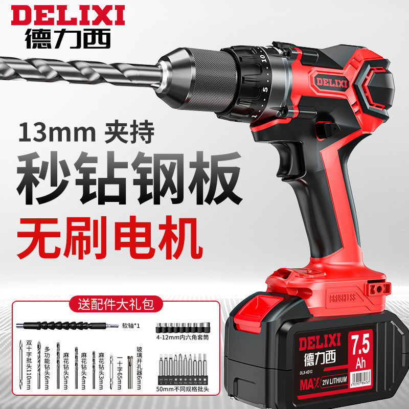 徳力西ブラシレスリチウム電気ドリル充電式電気ドリル家庭用工業級ピストルインパクトドリル電動ドライバーツール