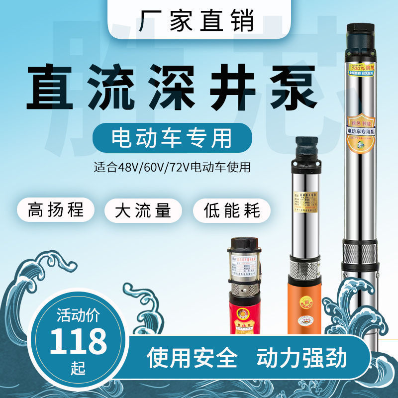 DC ウォーターポンプ 48V60V72V バッテリー車ポンプ高揚程深井戸ポンプ農業灌漑水中ポンプ