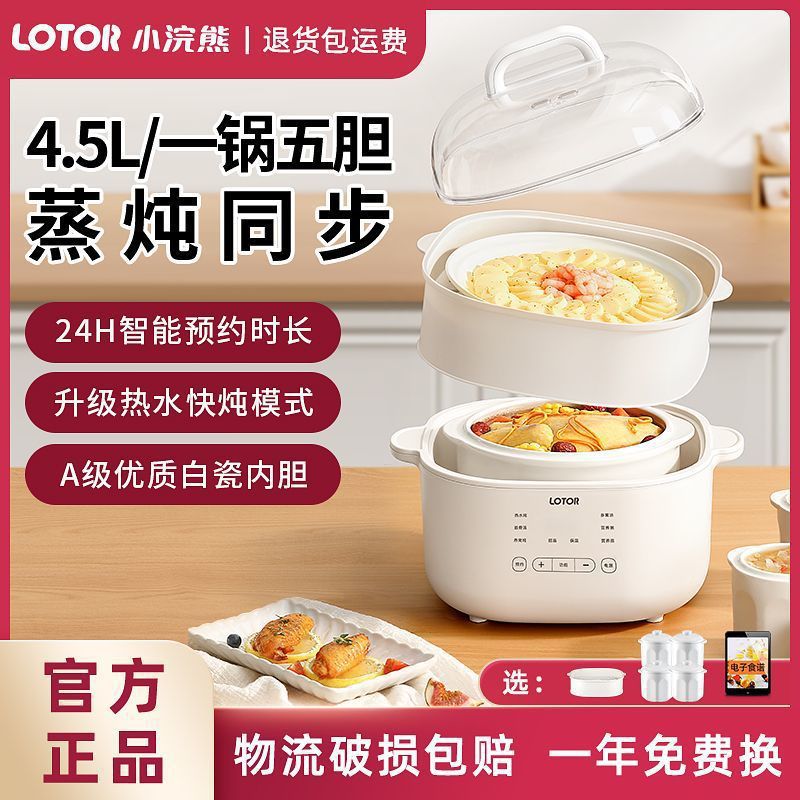 リトルアライグマ電気シチューポット、小さなベビーお粥専用ポット、防水電気シチューポット、予約タイマー付きベビーフードサプリメントお粥
