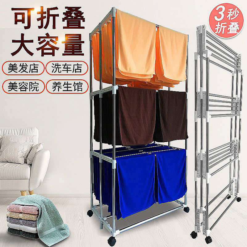 理髪店用タオルラック、美容室・洗車場用の床置き折りたたみ式ステンレス製タオルラック