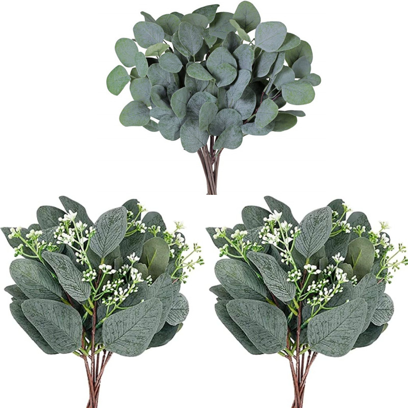 シミュレーション緑植尤加利葉単葉三叉葉四枝葉シルクプリント花輪部品