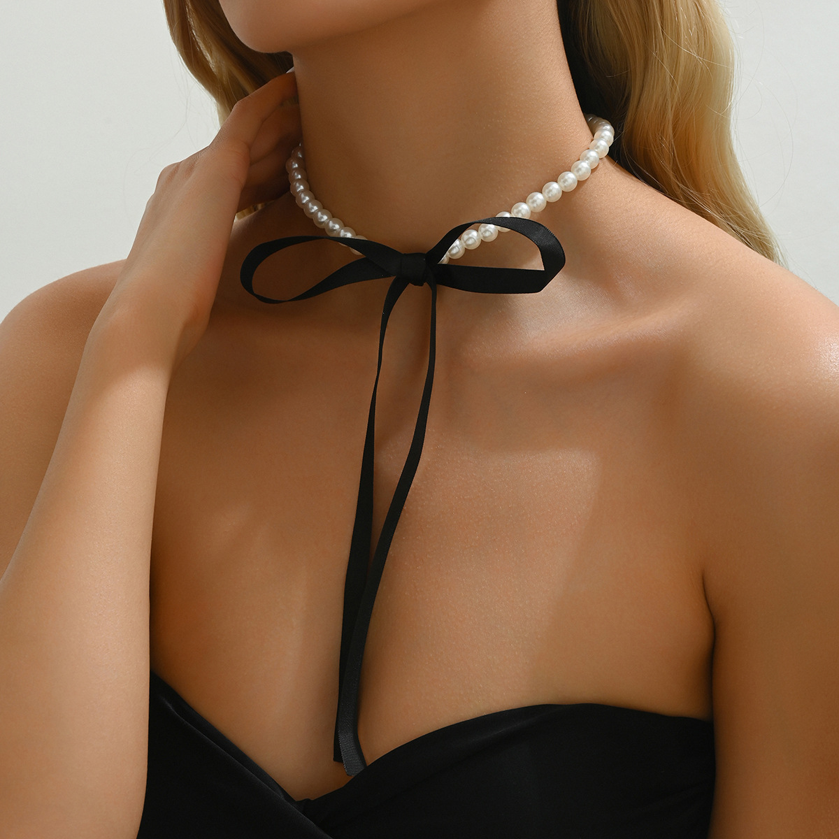 欧米のクロスボーダーの装飾品のレトロな長いタイプの蝶結びの鎖の鎖の首の鎖のDIYはベルベットの真珠のネックレスの女性を結びます。