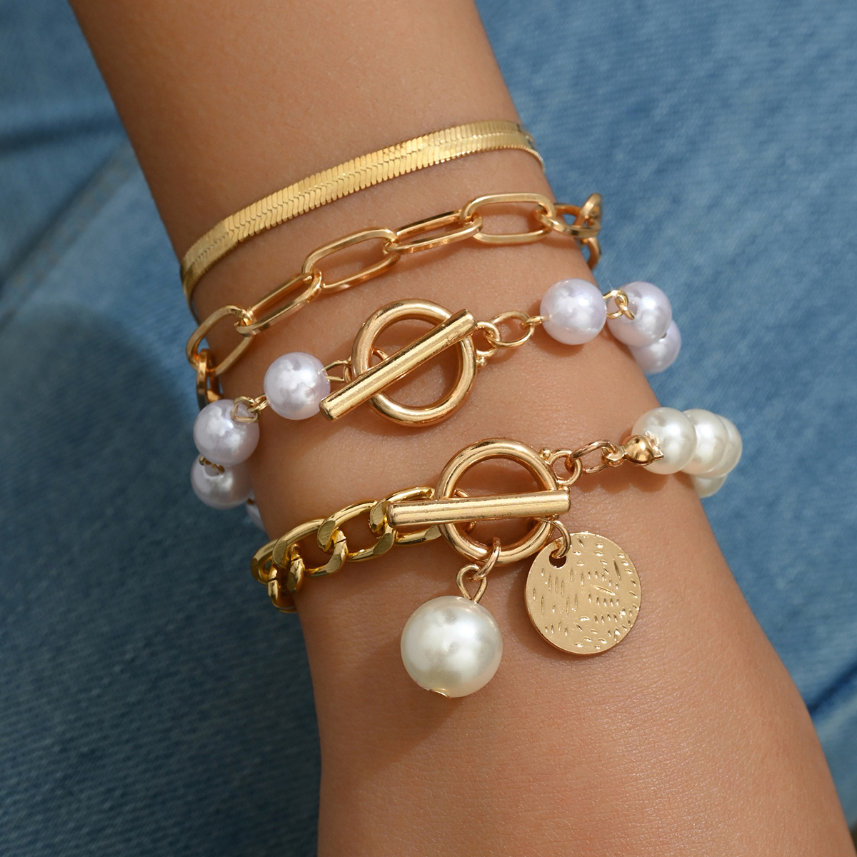 欧米の国境を越えた宝飾品のレトロな模造真珠チェーンのビーズブレスレットのシンプルな幾何学的なブレスレットA0002