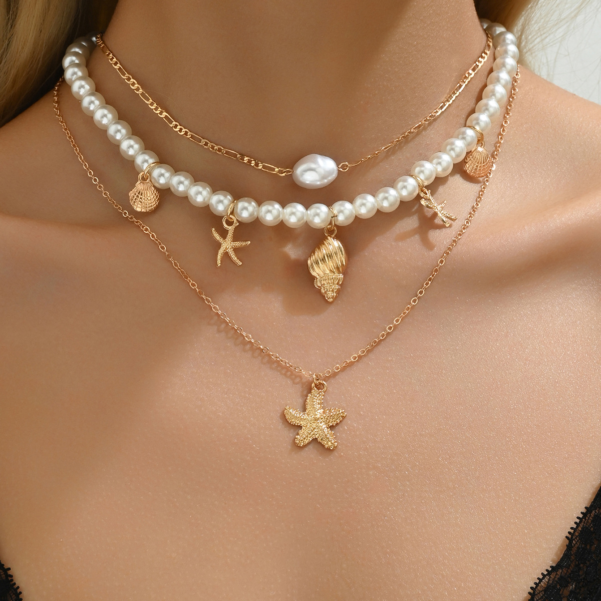 欧米の国境を越えたメーカーのアクセサリー海星貝殻復古休暇necklaceビーズビーチ模造真珠ネックレス