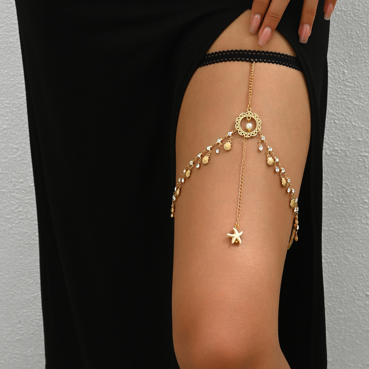 欧米のクロスボーダーの人気セクシーな弾力性のあるチェーンの純粋な欲望の海星の貝殻のドリルチェーンinsの体のチェーンh 0015