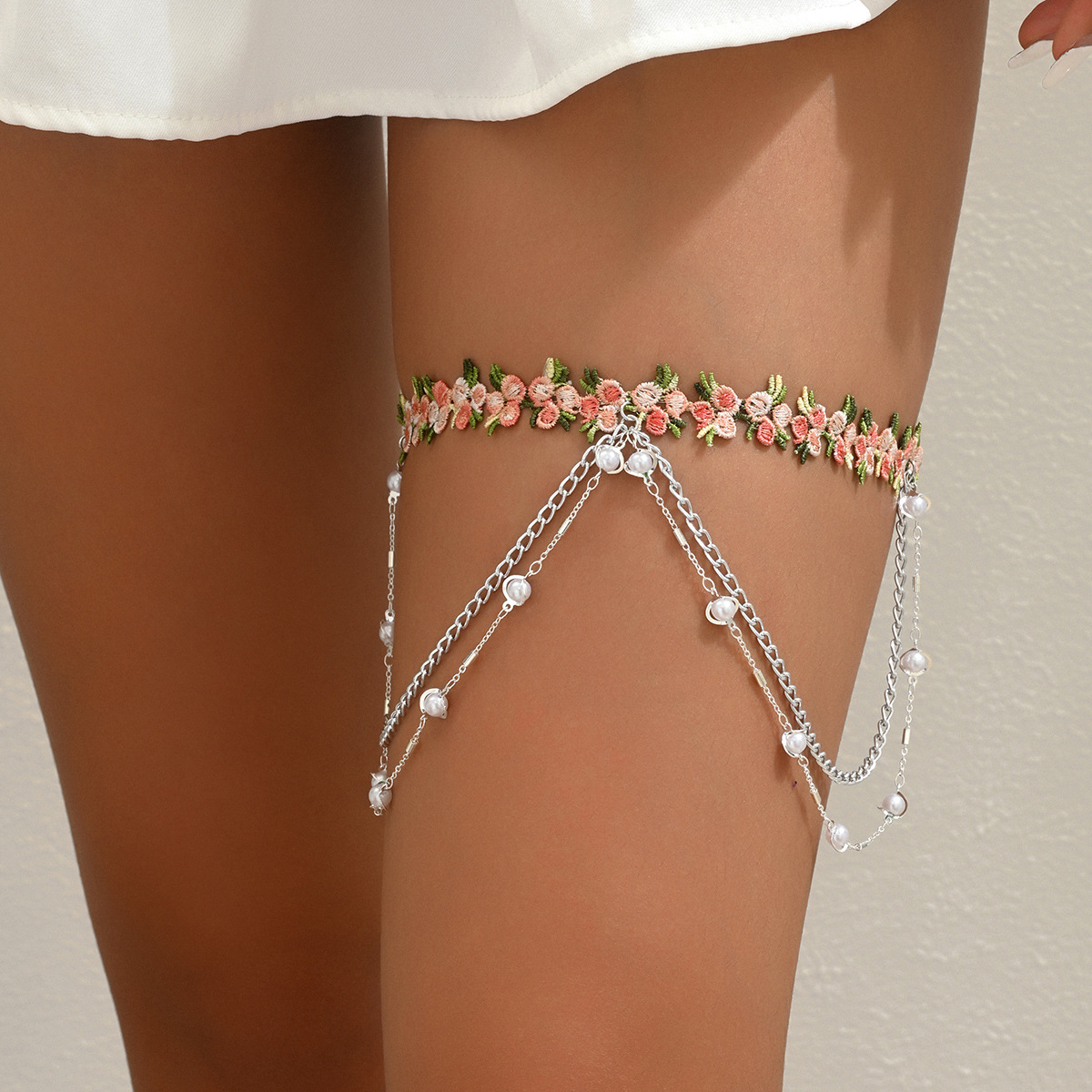 メーカークロスボーダー人気アクセサリー真珠手作り金属チェーン刺繍砕花ピンク少女セクシーかわいい脚チェーン